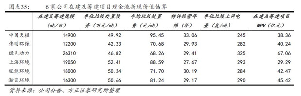 根據(jù)目前在手訂單信息統(tǒng)計,我們對于7家公司在建及籌建項目的NPV進行估算: