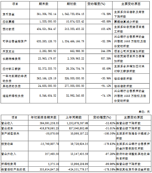 公告顯示,公司前三季度營業(yè)收入584,091,258.33元,同比減少52.62%,歸屬上市公司股東的凈利潤-209,729,620.45元,同比減少5737.61%。