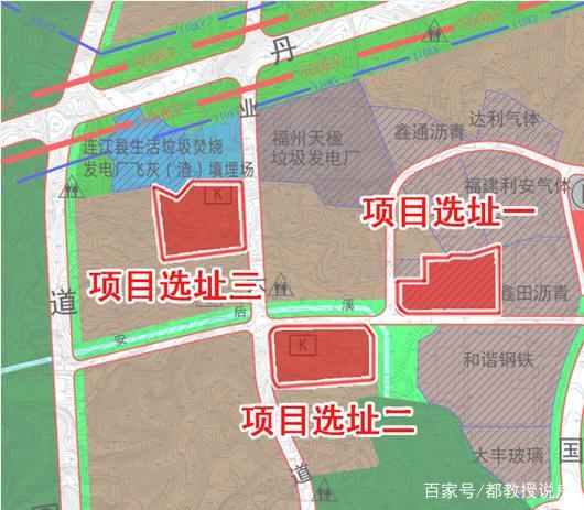 本次選址方案共三個地塊,均位于東湖鎮(zhèn)飛石村北側,用地性質均為二類工業(yè)用地。三個擬選址地塊均位于連江西北經(jīng)濟區(qū)南部,位于工業(yè)園區(qū)中心地帶,距連江縣城約7公里,距福州市區(qū)約24公里,靠近產(chǎn)品主銷區(qū)。三個擬選址地塊均距離連江縣生活垃圾焚燒發(fā)電廠、連江縣生活垃圾焚燒發(fā)電廠飛灰(渣)填埋場不足0.5公里,垃圾轉運方便。