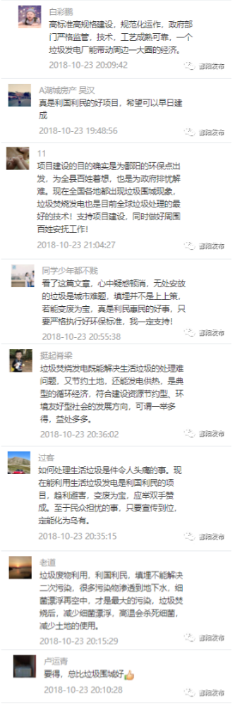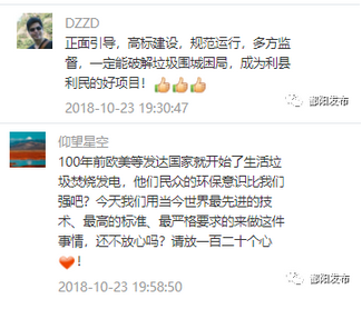 短時(shí)間內(nèi),《哦!生活垃圾焚燒發(fā)電原來是這么回事!》一文閱讀量突破三萬,可見鄱陽縣社會(huì)各界對(duì)該項(xiàng)目的廣泛關(guān)注。網(wǎng)友的留言中有90%對(duì)鄱陽縣建造生活垃圾焚燒發(fā)電廠表示認(rèn)可、鼓勵(lì)。