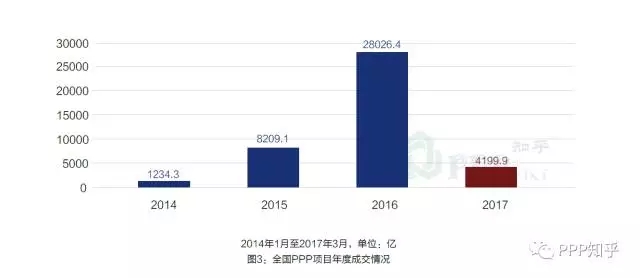 而中國自2014年以來,根據(jù)PPP知乎和龍元明城的市場成交月報數(shù)據(jù),截止2017年3月31日,大約3年的時間成交項目總數(shù)就達(dá)到了2579個,累計金額達(dá)到了4.17萬億元,并呈現(xiàn)了明顯的逐年加速態(tài)勢(參見《2017年3月全國PPP項目市場動態(tài)》)。