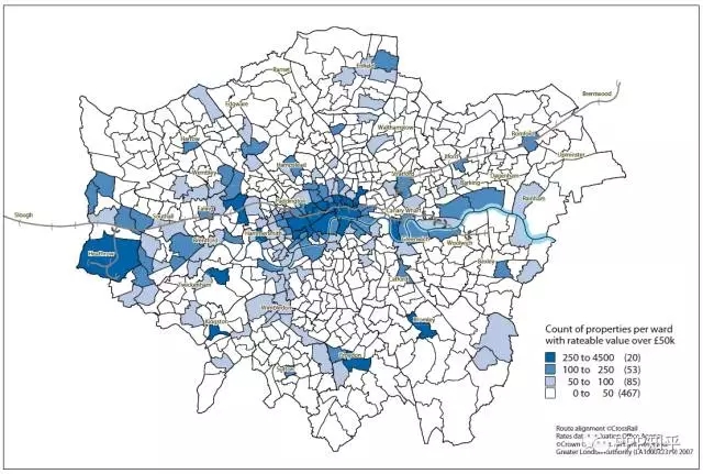 PPP模式可能使項(xiàng)目更加物有所值,公共預(yù)算支出更有效率,但單純依靠政府付費(fèi),財(cái)政可承受能力終歸是有上限的。因此,如何挖掘項(xiàng)目本身的商業(yè)潛力和拓展公共支出的來源就顯得尤為重要。大型基礎(chǔ)設(shè)施項(xiàng)目往往具有外部性,可以采用適當(dāng)?shù)姆椒▽⑵渫獠啃б鎯?nèi)在化,來反哺項(xiàng)目本身。橫穿倫敦108公里的伊麗莎白線的總建設(shè)預(yù)算達(dá)148億英鎊,計(jì)劃通過稅收增量融資和開發(fā)基礎(chǔ)設(shè)施費(fèi)的模式來將地鐵帶動(dòng)的土地和物業(yè)價(jià)值升值反饋給軌道項(xiàng)目。一方面,在未來24-30年內(nèi),對(duì)該軌道項(xiàng)目收益的價(jià)值5.5萬英鎊以上的商業(yè)物業(yè)額外征收2%的商業(yè)物業(yè)稅(BRS-Business Rate Supplement),如下圖所示。