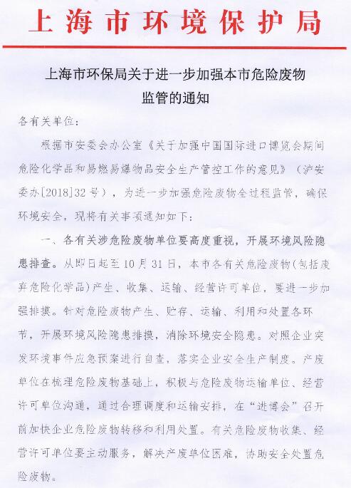 日前,上海環(huán)保局發(fā)布關于進一步加強本市危險廢物新聞專題">危險廢物監(jiān)管的通知,詳情如下: