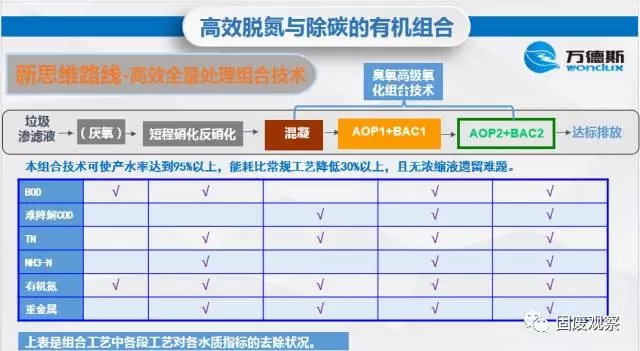 南京萬(wàn)德斯環(huán)??萍脊煞萦邢薰旧虾7止究偨?jīng)理陳建湧介紹,在滲瀝液脫碳技術(shù)上,萬(wàn)德斯環(huán)保采用“厭氧+高效生化+納濾+臭氧高級(jí)氧化AOP(Advanced Oxidation Process)” 為主的工藝,在高效脫氮中,利用短程硝化技術(shù),節(jié)省供氧量25%、節(jié)省反硝化碳源40%、減少污泥生成量50%、減少投堿量、縮短反應(yīng)時(shí)間。在滲瀝液高效全量處理中,組合利用 “厭氧+短程硝化反硝化+臭氧高級(jí)氧化(混凝+AOP1+BAC1+AOP2+BAC2)”技術(shù),能使產(chǎn)水率達(dá)到95%以上,且無(wú)濃縮液遺留難題。除技術(shù)創(chuàng)新外,陳建湧總經(jīng)理認(rèn)為,提倡垃圾干濕分類,采取各種有效措施減少各種好水分包括雨水進(jìn)入垃圾,以及垃圾堆場(chǎng)等,對(duì)降低滲瀝液處理成本具有非常重要的意義。