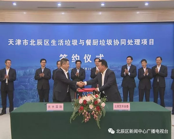 日前,北辰區(qū)與中國(guó)光大國(guó)際有限公司簽定生活垃圾與餐廚垃圾協(xié)同處理項(xiàng)目。中國(guó)光大國(guó)際有限公司總裁王天義、副總經(jīng)理胡延國(guó),中國(guó)光大銀行天津分行行長(zhǎng)陳紹寧,區(qū)委副書記、區(qū)長(zhǎng)王寶雨,副區(qū)長(zhǎng)胡學(xué)春出席簽約儀式。