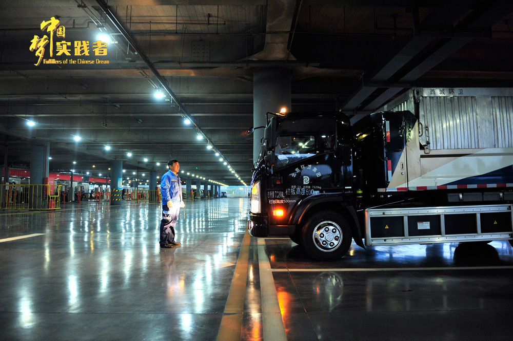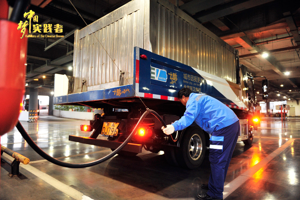王師傅與同事們平時(shí)擔(dān)負(fù)著北京西城區(qū)內(nèi)50.7平方公里53個(gè)垃圾站的垃圾和糞便清運(yùn)任務(wù),每天4至5趟的清運(yùn)任務(wù),日行程近150公里,清運(yùn)垃圾15噸。