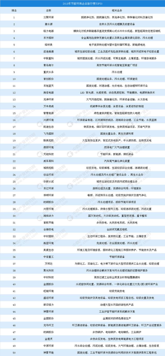 在2018年節(jié)能環(huán)保企業(yè)排行榜中,排名前十的企業(yè)分別為三聚環(huán)保、碧水源、格力電器。東方園林、格林美、啟迪桑德、中聯(lián)重科、青島海爾、重慶水務(wù)、首創(chuàng)股份。