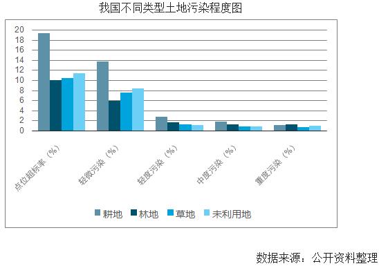 從土地類型來看,耕地的點(diǎn)位超標(biāo)率最高,達(dá)到了19.4%,而其他三種土地的超標(biāo)率略高于10%的水平。耕地直接涉及到我國的食品安全問題,這也是近年來土地污染問題越來越受到群眾關(guān)心的重要原因。