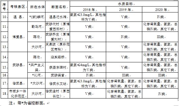 8.推進(jìn)水污染綜合整治及水生態(tài)保護(hù)修復(fù)。加強(qiáng)河湖水污染綜合整治及水生態(tài)保護(hù)、修復(fù)等。針對(duì)沁河(武陟渠首斷面),相關(guān)縣(市)要制定實(shí)施河流水質(zhì)提升專項(xiàng)方案,確保到2019年斷面水質(zhì)達(dá)到或好于Ⅲ類;針對(duì)蟒河、共產(chǎn)主義渠、大沙河等污染較重河流(水體),相關(guān)縣(市)要制定實(shí)施整治方案,確保到2019年蟒河溫縣汜水灘、共產(chǎn)主義渠獲嘉東碑村、大沙河修武水文站斷面水質(zhì)達(dá)到或好于Ⅴ類,到2020年蟒河溫縣汜水灘斷面水質(zhì)達(dá)到或好于Ⅳ類。(市住房城鄉(xiāng)建設(shè)局、水利局、環(huán)境保護(hù)局牽頭,市發(fā)展改革委、財(cái)政局、林業(yè)局參與,各縣(市)區(qū)政府、市城鄉(xiāng)一體化示范區(qū)管委會(huì)負(fù)責(zé)落實(shí))