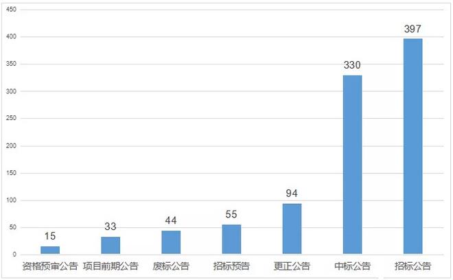 11月上旬(11月1日-10日)全國(guó)各地共發(fā)布環(huán)衛(wèi)運(yùn)營(yíng)類(lèi)項(xiàng)目公開(kāi)招標(biāo)采購(gòu)信息968個(gè),其中:項(xiàng)目前期公告33個(gè),招標(biāo)預(yù)告55個(gè),招標(biāo)公告397個(gè),資格預(yù)審公告15個(gè),更正公告94個(gè),中標(biāo)公告330個(gè),廢標(biāo)及流標(biāo)公告44個(gè)。