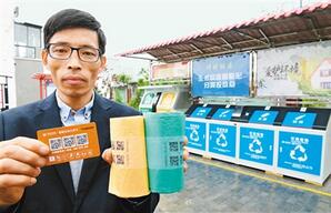 村民可將紙張、塑料、金屬、玻璃等可回收垃圾分類裝進橘黃色二維碼垃圾袋,或打包貼上二維碼,掃描后投放至專用垃圾箱,機器自動稱重,核算出價格,等垃圾回收工作人員分揀確認之后,按不同類別向村民返還積分,積分還可到指定地點兌換相應(yīng)的生活用品。何鵬說,有了這些激勵政策,每位村民對垃圾分類都非常認真。