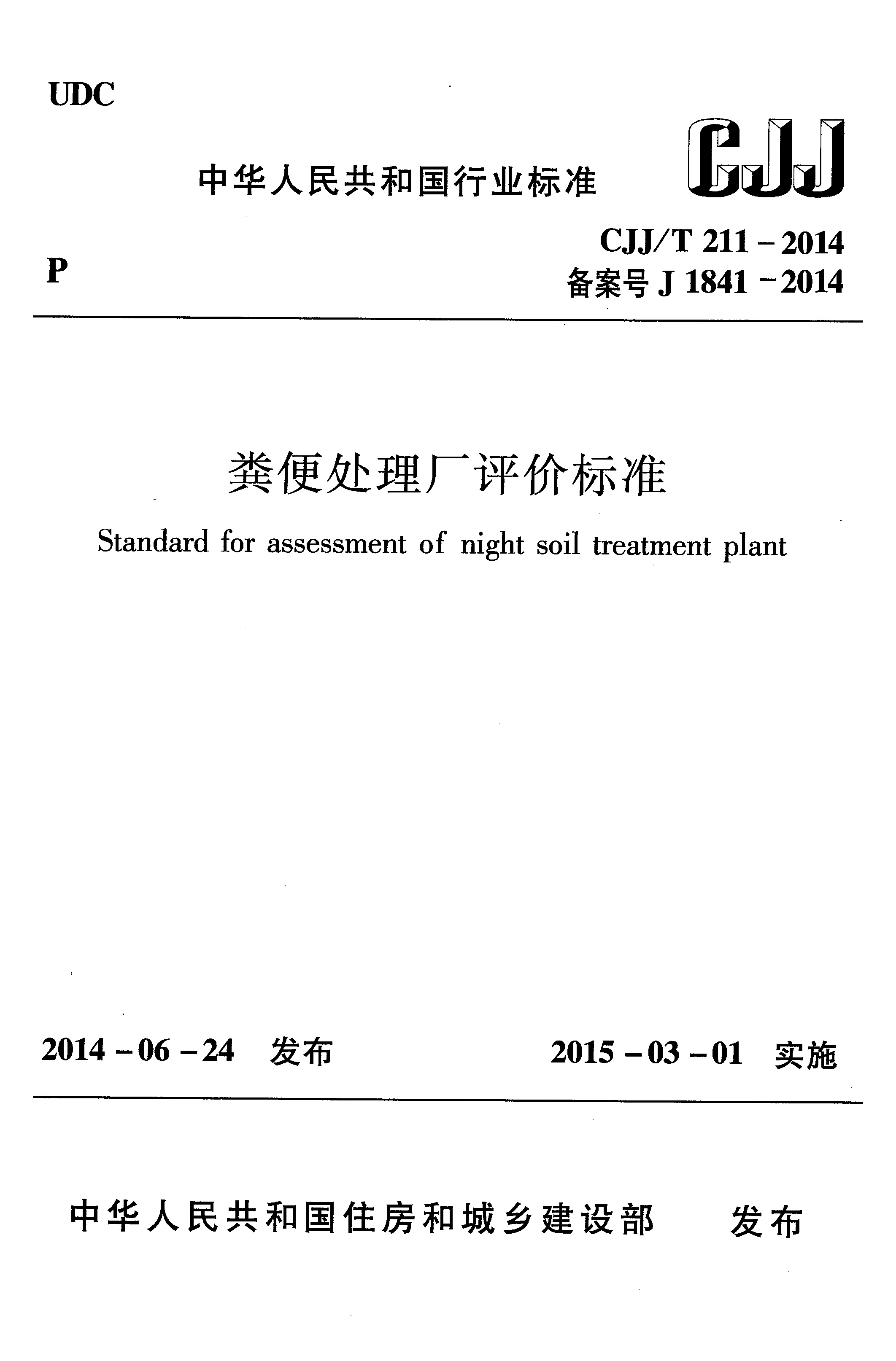 糞便處理廠評(píng)價(jià)標(biāo)準(zhǔn)(CJJ/T 211-2014)