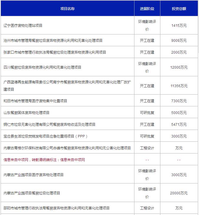 二、中項網(wǎng)權(quán)威發(fā)布2017年4月份國內(nèi)擬在建廢棄物項目(以下為部分項目列表):