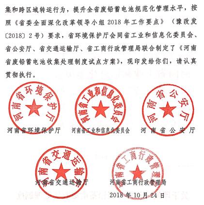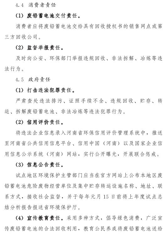 河南省廢鉛蓄電池收集處理制度試點方案