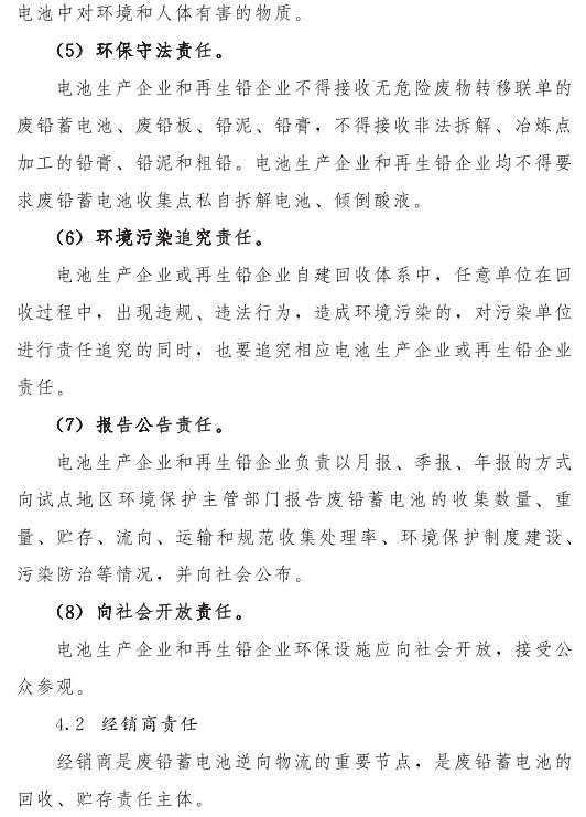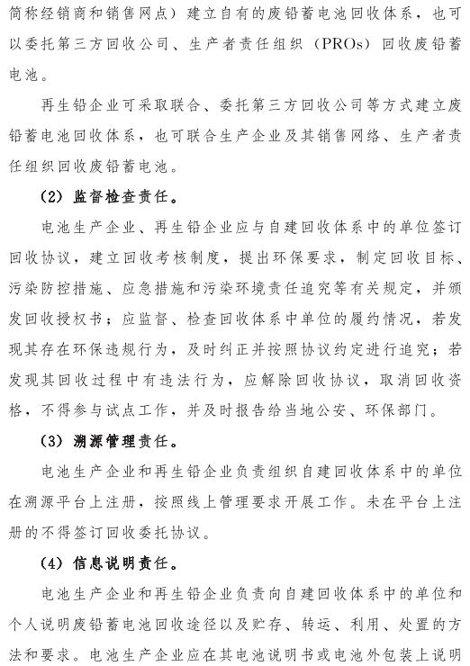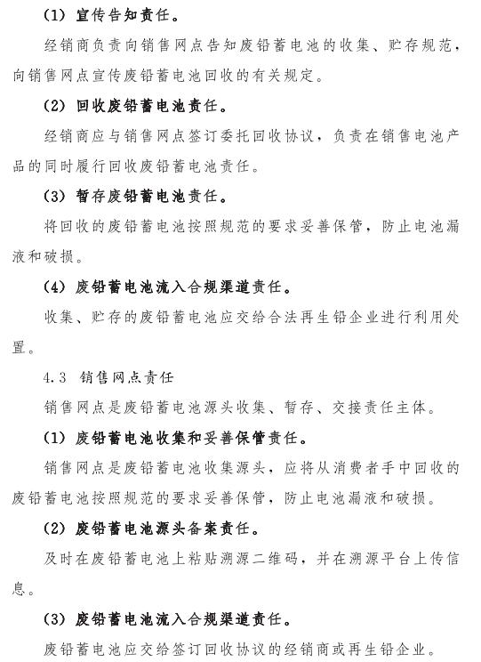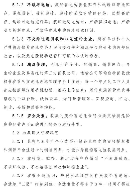 推動落實生產(chǎn)者責(zé)任延伸制度,由鉛蓄電池生產(chǎn)企業(yè)依托自有銷售渠道建立廢鉛蓄電池逆向物流回收體系,持危險廢物經(jīng)營許可證的再生鉛企業(yè)可通過自主回收、聯(lián)合回收或委托回收等方式建立回收體系。鼓勵生產(chǎn)企業(yè)和持證企業(yè)進(jìn)行信息溝通和密切合作,以市場為導(dǎo)向,建立穩(wěn)定的商業(yè)交易模式,并采取以舊換新等措施,不斷提高收集處理率。各回收體系收集的廢鉛蓄電池最終須交由具有危險廢物經(jīng)營許可證的再生鉛企業(yè)利用處置。制定 《廢鉛蓄電池規(guī)范化管理指南》,明確回收體系中各環(huán)節(jié)、各責(zé)任主體責(zé)任及廢鉛蓄電池管理規(guī)范。參與廢鉛蓄電池回收的各責(zé)任主體須嚴(yán)格遵守 《廢鉛蓄電池規(guī)范化管理指南》的各項規(guī)定。