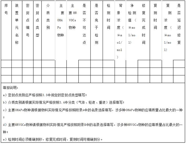 5.1 設備泄漏檢測與修復數(shù)據(jù)應進行記錄并保存至少 5 年,記錄內容包括但不限于附錄C所列示的信息。