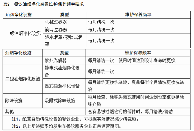 7.3 油煙凈化設施維護保養(yǎng)頻率按表2的規(guī)定。