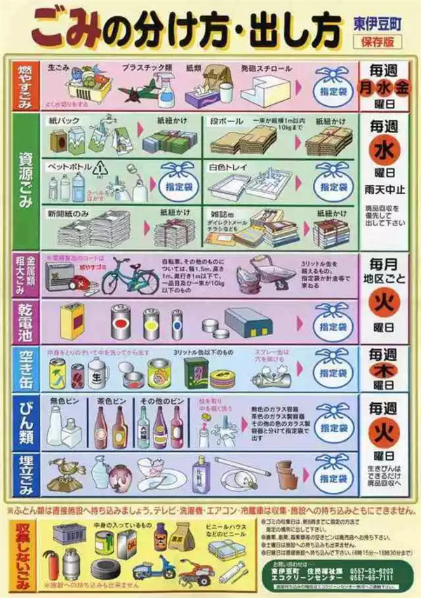 各種垃圾的收集日期都不同,不論是歪果仁,還是日本當(dāng)?shù)厝?,只要搬家,第一件事就是向鄰居要一份?dāng)市的垃圾分類指南。
