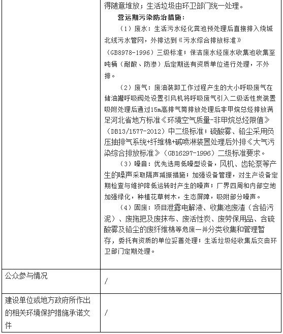 原標(biāo)題:年回收、倉儲廢礦物油10000t、廢舊鉛酸蓄電池50000t建設(shè)項目環(huán)境影響報告表擬審批公示