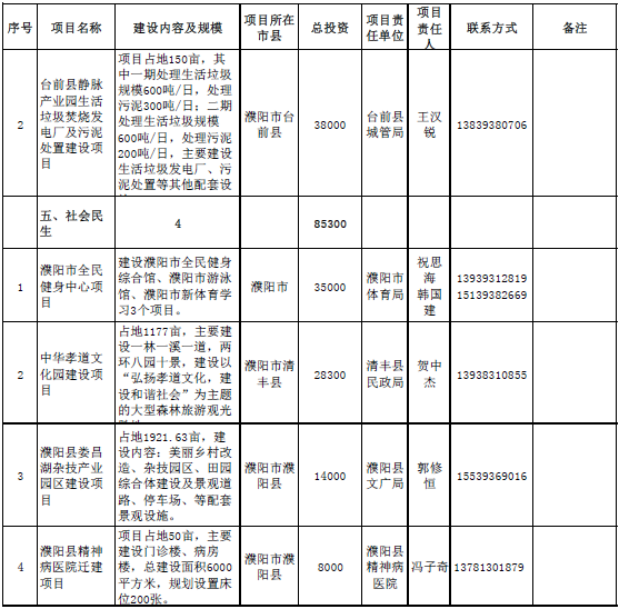 生態(tài)環(huán)保領(lǐng)域項目2個,總投資115600萬元,主要包括濮陽縣靜脈產(chǎn)業(yè)園項目、臺前縣靜脈產(chǎn)業(yè)園生活垃圾焚燒發(fā)電廠及污泥處置建設(shè)項目。