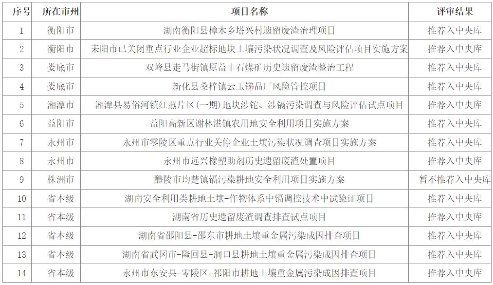 湖南省生態(tài)環(huán)境廳關于2022年度第一批土壤污染防治項目、地下水污染防治項目評審結果的公示 根據(jù)《土壤污染防治資金管理辦法》、《中央生態(tài)環(huán)境資金項目管理規(guī)程》、《中央生態(tài)環(huán)境資金項目儲備庫入庫指南(2021年)》等有關要求,為加強項目儲備,提高項目儲備質量,經(jīng)項目單位申請、市級生態(tài)環(huán)境部門審查、專家評...