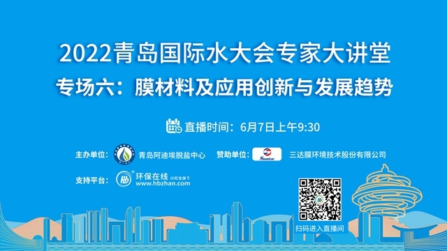 “2022青島國(guó)際水大會(huì)專家系列大講堂”接力第七場(chǎng)——凈水行業(yè)高端論壇將于6月14日上午登陸環(huán)保在線!緊跟海水淡化、工業(yè)節(jié)水與污水資源化、城鎮(zhèn)水務(wù)、水資源可持續(xù)、水環(huán)境治理、膜材料等議題的熱度,凈水行業(yè)的當(dāng)下與未來,誠(chéng)邀業(yè)界同仁共探共論。(點(diǎn)擊圖片,即...