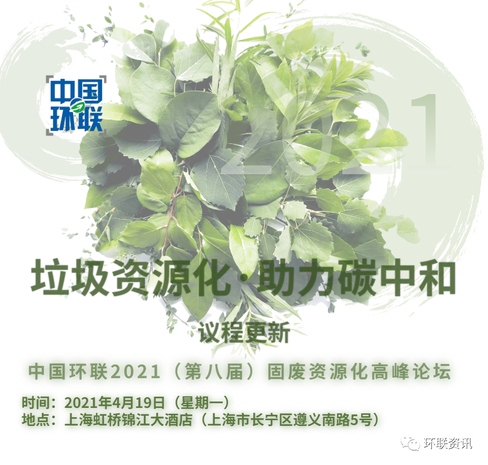 文章導(dǎo)讀中國環(huán)聯(lián)將于2021年4月19日在上海舉辦第八屆固廢資源化高峰論壇,論壇主題“垃圾資源化,助力碳中和”。將邀請生活垃圾分類、廚余垃圾處理、垃圾焚燒發(fā)電、智慧環(huán)衛(wèi)管理、低碳技術(shù)應(yīng)用等領(lǐng)域卓越企業(yè)代表,高等院校資深專家及政府官員參加,解讀最新政策趨勢、分析市場特點(diǎn)及行業(yè)技術(shù)焦點(diǎn)、分享創(chuàng)新業(yè)務(wù)模式...