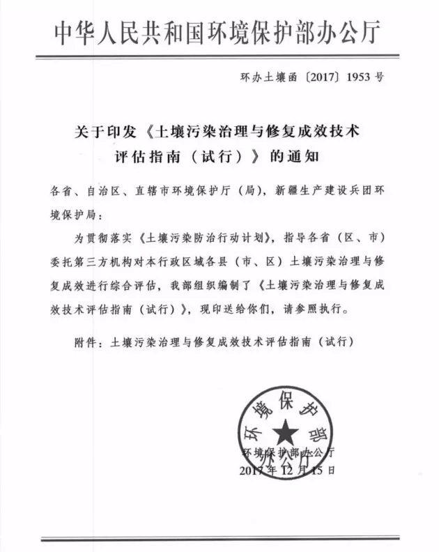 為指導(dǎo)地方委托第三方開展治理與修復(fù)成效評估工作,推動落實《土壤污染防治行動計劃》,完成土壤污染治理與修復(fù)目標任務(wù),保障農(nóng)產(chǎn)品質(zhì)量和人居環(huán)境安全,根據(jù)《中華人民共和國環(huán)境保護法》和《土壤污染防治行動計劃》等法律和文件的規(guī)定,日前,環(huán)保部印發(fā)了《土壤污染治理與修復(fù)成效技術(shù)評估指南(試行)》。來源:環(huán)境工...