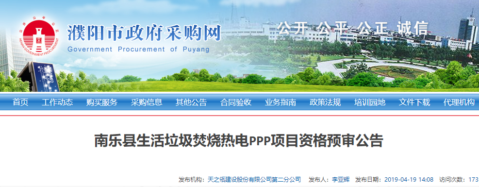 中國環(huán)聯(lián)網(wǎng)獲悉,4月19日,河南濮陽南樂縣生活垃圾焚燒熱電PPP項目發(fā)布資格預(yù)審公告,采購控制價為每噸垃圾補(bǔ)貼費(fèi)不超過62.87元。項目概況及采購內(nèi)容項目名稱:南樂縣生活垃圾焚燒熱電PPP項目。項目編號:HNTZL-2019-016采購方式:公開招標(biāo)。項目概況:本項目設(shè)計日處理垃圾量為600噸/日,...