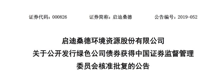 日前,中國環(huán)聯(lián)網(wǎng)獲悉,啟迪桑德發(fā)布公告稱,公司擬發(fā)行不超過50億綠色公司債已經(jīng)獲得證監(jiān)會批復(fù)。詳情如下:2019年4月30日,啟迪桑德環(huán)境資源股份有限公司(以下簡稱“公司”)收到中國證券監(jiān)督管理委員會(以下簡稱“中國證監(jiān)會”)出具的《關(guān)于核準(zhǔn)啟迪桑德環(huán)境資源股份有限公司向合格投資者公開發(fā)行綠色公司債...