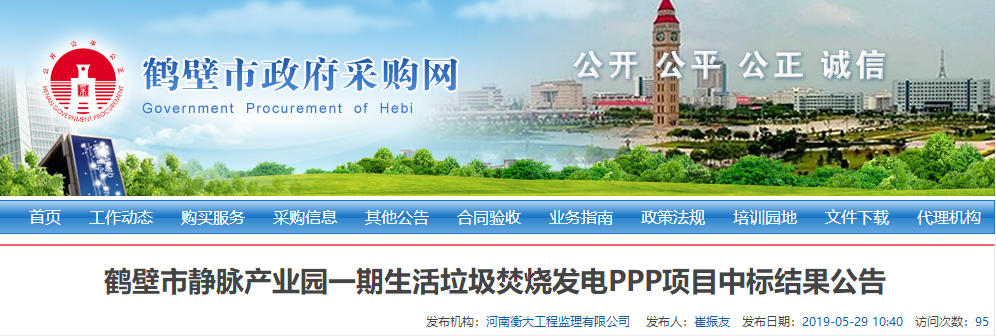 中國環(huán)聯(lián)網(wǎng)獲悉,5月29日,河南省鶴壁市靜脈產(chǎn)業(yè)園一期生活垃圾焚燒發(fā)電PPP項目發(fā)布中標(biāo)結(jié)果公告,河南城發(fā)環(huán)境股份有限公司(牽頭人)、上??岛悱h(huán)境股份有限公司、中國電建集團(tuán)河南工程有限公司組成的聯(lián)合體成為中標(biāo)的社會資本方。主要成交條件:1、總投資概算:項目總投資 57570.52萬元2、項目合作期限...