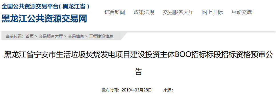 中國(guó)環(huán)聯(lián)網(wǎng)獲悉,3月28日,黑龍江省寧安市生活垃圾焚燒發(fā)電項(xiàng)目建設(shè)投資主體BOO招標(biāo)發(fā)布資格預(yù)審公告。項(xiàng)目概況與招標(biāo)范圍項(xiàng)目名稱:黑龍江省寧安市生活垃圾焚燒發(fā)電項(xiàng)目建設(shè)投資主體BOO招標(biāo)建設(shè)方式:采用BOO特許經(jīng)營(yíng)方式建設(shè),中標(biāo)人須按《中華人民共和國(guó)公司法》和相關(guān)企業(yè)法等國(guó)家有關(guān)法律、法規(guī)以及政策規(guī)...