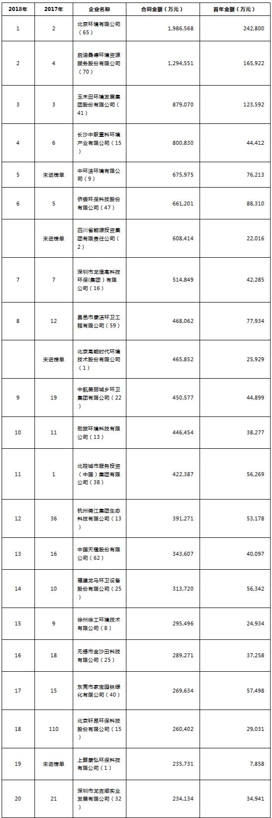 近日,環(huán)境服務(wù)行業(yè)數(shù)據(jù)挖掘與監(jiān)測平臺“環(huán)境司南”發(fā)布“環(huán)境司南2018年度環(huán)衛(wèi)市場化報告”,報告公布了2018年度環(huán)衛(wèi)服務(wù)企業(yè)(簽約能力)百強榜,盈峰環(huán)境全資子公司中聯(lián)環(huán)境位列百強榜第四位。本次環(huán)衛(wèi)服務(wù)企業(yè)榜單共收錄2018年1~12月份中標(biāo)環(huán)衛(wèi)服務(wù)項目/標(biāo)段13309個,涉及合同總金額2278億元...