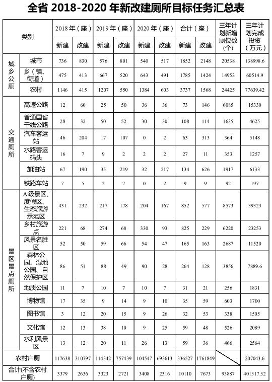 日前,四川省發(fā)布了關(guān)于進(jìn)一步推進(jìn)全省“廁所革命”工作的意見(jiàn),并公布了《四川省推進(jìn)“廁所革命”三年行動(dòng)方案(2018—2020年)》,詳情如下:四川省人民政府辦公廳關(guān)于進(jìn)一步推進(jìn)全省“廁所革命”工作的意見(jiàn)川辦發(fā)〔2018〕89號(hào)各市(州)人民政府,省政府各部門(mén)、各直屬機(jī)構(gòu),有關(guān)單位:為深入貫徹落實(shí)黨中...