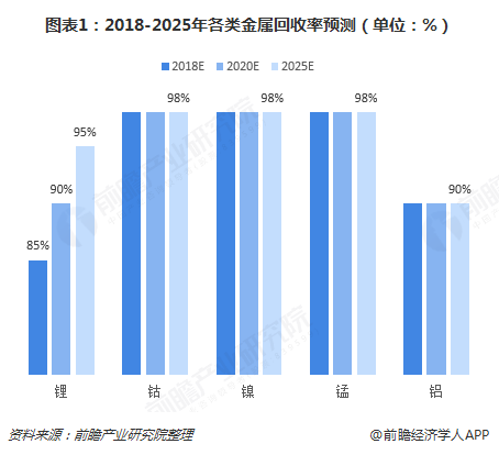 統(tǒng)一拆解模式下的市場規(guī)模預測假設(shè)統(tǒng)一將報廢電池全部回收再造,即磷酸鐵鋰、錳酸鋰電池均按溶解回收金屬來計算。磷酸鐵鋰電池中,可回收的金屬主要是鋰,占正極材料的4.43%;錳酸鋰電池中鋰的含量為7.45%,此外,還有58.5%的錳金屬;三元電池中,可回收的金屬材料價值更大,含7.17-7.26%的鋰、6...