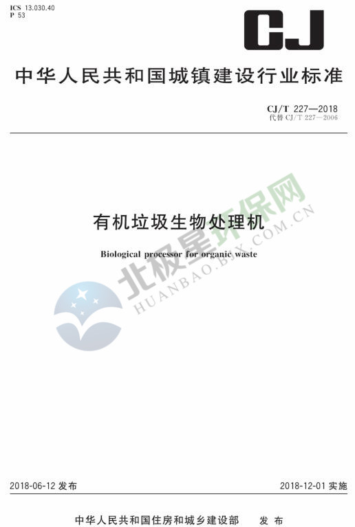 日前,住建部發(fā)布了行業(yè)產(chǎn)品標(biāo)準(zhǔn) 《有機(jī)垃圾生物處理機(jī)》,詳情如下:住房城鄉(xiāng)建設(shè)部關(guān)于發(fā)布行業(yè)產(chǎn)品標(biāo)準(zhǔn)《有機(jī)垃圾生物處理機(jī)》的公告 現(xiàn)批準(zhǔn)《有機(jī)垃圾生物處理機(jī)》為城鎮(zhèn)建設(shè)行業(yè)產(chǎn)品標(biāo)準(zhǔn),編號(hào)為CJ/T227-2018,自2018年12月1日起實(shí)施。原《垃圾生化處理機(jī)》CJ/T227-2006同時(shí)廢止。本...