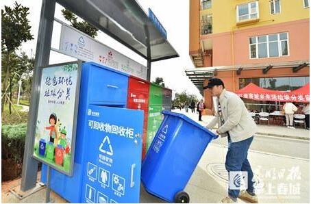 日前,昆明市福澤雅苑小區(qū)作為盤(pán)龍區(qū)第二個(gè)試點(diǎn)小區(qū),啟動(dòng)垃圾分類(lèi),居民只要將垃圾分類(lèi)正確并達(dá)到一定數(shù)量,就可以獲得積分,然后用積分兌換生活用品。圖為京環(huán)盤(pán)宸公司工作人員查看垃圾分類(lèi)投放點(diǎn)。記者王俊星攝記者在福澤雅苑小區(qū)入口處看到,云南京環(huán)盤(pán)宸環(huán)境資源有限公司(以下簡(jiǎn)稱(chēng)京環(huán)盤(pán)宸公司)在小區(qū)內(nèi)投放的垃圾回...
