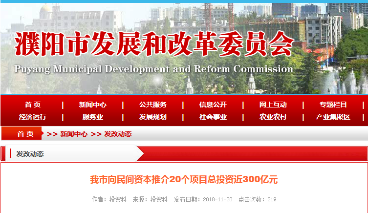 11月16日,河南省召開2018年向民間資本推介項目會議。會上,我市向民間資本推介了重點領(lǐng)域20個項目,總投資299.04億元,分別占全省的9.17%、11.4%。從項目具體情況看,這批推介項目涵蓋了交通、水利、城市建設(shè)、生態(tài)環(huán)保、社會民生等五個方面。關(guān)交通領(lǐng)域項目1個,總投資43160萬元,主要建...