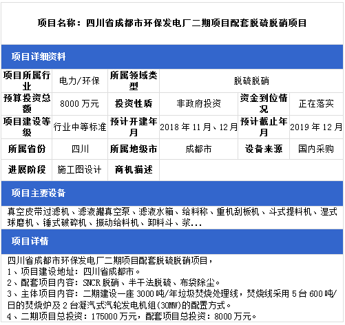 中項(xiàng)網(wǎng)獨(dú)家授權(quán)北極星環(huán)保網(wǎng)發(fā)布最新脫硫脫硝項(xiàng)目(2018年11月14日更新),涉及環(huán)保電廠配套脫硫脫硝項(xiàng)目、生物質(zhì)發(fā)電配套脫硫脫硝項(xiàng)目、熱電聯(lián)產(chǎn)脫硫脫硝項(xiàng)目、垃圾焚燒發(fā)電廠脫硫脫硝項(xiàng)目等,具體項(xiàng)目信息如下: