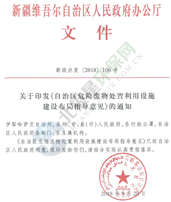 為指導(dǎo)和推進(jìn)全區(qū)危險(xiǎn)廢物處置利用設(shè)施布局和建設(shè),提升危險(xiǎn)廢物集中處置利用能力,促進(jìn)危險(xiǎn)廢物安全處置,防范危險(xiǎn)廢物污染環(huán)境風(fēng)險(xiǎn),新疆自治區(qū)人民政府辦公廳印發(fā)了《自治區(qū)危險(xiǎn)廢物處置利用設(shè)施建設(shè)布局指導(dǎo)意見》?!吨笇?dǎo)意見》根據(jù)全區(qū)危險(xiǎn)廢物產(chǎn)生、處置利用現(xiàn)狀和發(fā)展趨勢,以解決急需、兼顧長遠(yuǎn),就近處置、合理布...