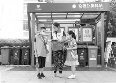 在北京市海淀區(qū)新科祥園社區(qū),社區(qū)工作人員(中)為“綠色明天”環(huán)保志愿小隊隊員李夢鴻一(右)、施柏涵介紹垃圾分類知識。新華社記者 任超攝住建部、生態(tài)環(huán)境部等6部委近日聯(lián)合印發(fā)《綠色社區(qū)創(chuàng)建行動方案》(以下簡稱《方案》),要求綠色社區(qū)創(chuàng)建要與居民自治機(jī)制建設(shè)、社區(qū)服務(wù)體系建設(shè)有機(jī)結(jié)合起來,營造社區(qū)宜居環(huán)...