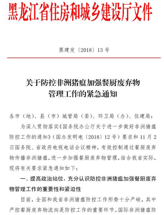 日前,黑龍江住建廳發(fā)布了關(guān)于防控非洲豬瘟加強(qiáng)餐廚廢棄物管理工作的緊急通知,《通知》指出,目前,全國(guó)和我省非洲豬瘟防控工作形勢(shì)十分嚴(yán)峻。國(guó)際非洲豬瘟防控實(shí)踐表明,餐廚廢棄物喂豬是非洲豬瘟傳播的重要途徑之一。各地要杜絕泔水喂豬,依據(jù)《黑龍江省食品安全條例》,建立健全餐廚廢棄物監(jiān)管機(jī)制,將餐飲經(jīng)營(yíng)者和單位...
