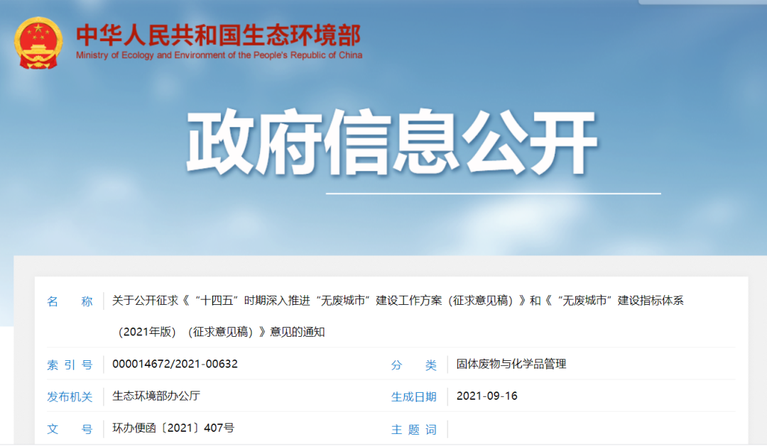 為深入打好污染防治攻堅戰(zhàn),推動形成綠色發(fā)展方式和生活方式,加強固體廢物系統(tǒng)治理,持續(xù)推進固體廢物源頭減量和資源化利用,最大限度減少填埋量,有效防范生態(tài)環(huán)境風(fēng)險,指導(dǎo)地方做好“十四五”時期“無廢城市”建設(shè)工作,我部會同相關(guān)部門組織編制了《“十四五”時期深入推進“無廢城市”建設(shè)工作方案(征求意見稿)》和...