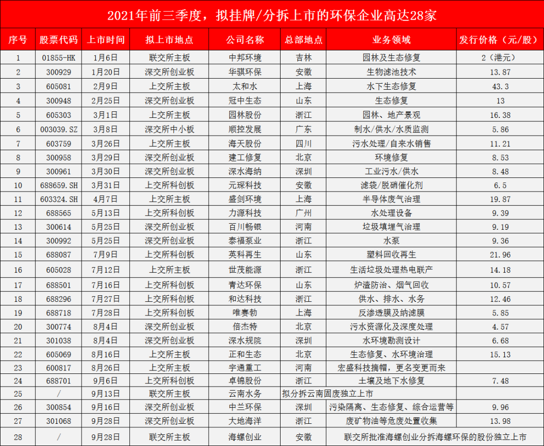 文章導(dǎo)讀十四五開局,已經(jīng)給不少環(huán)保企業(yè)判了死緩,十五五開局或許就是斬首的時(shí)刻,到時(shí)候沒有真本事的上市環(huán)企會(huì)更難受,尤其是帶病上市的,出局或許更快?!敖刂沟?月28日,今年前9個(gè)月掛牌/擬分拆上市的環(huán)企已達(dá)28家,不僅遠(yuǎn)超有環(huán)保IPO大年的2020年,更是突破歷年上市數(shù)量的最大值,再次刷新歷史紀(jì)錄?!?..