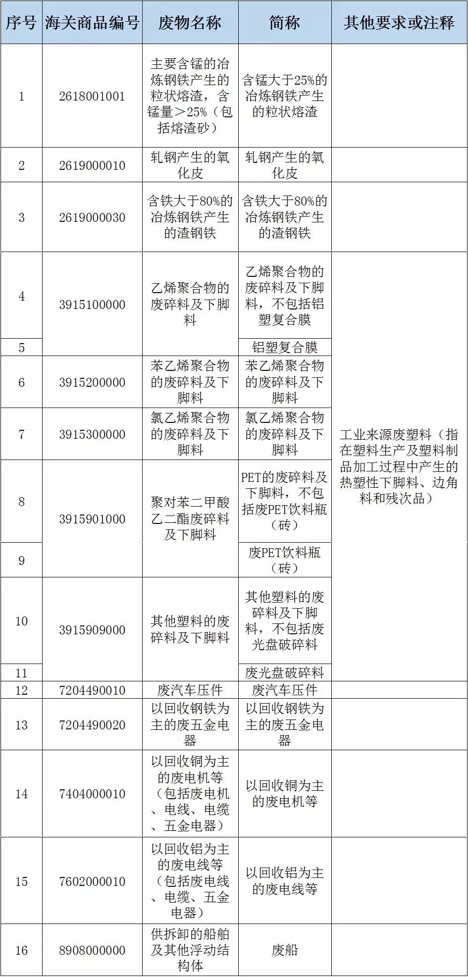 生態(tài)環(huán)境部今日召開例行新聞發(fā)布會(huì)。劉友賓介紹,近日,生態(tài)環(huán)境部、商務(wù)部、發(fā)展改革委、海關(guān)總署聯(lián)合印發(fā)《關(guān)于調(diào)整<進(jìn)口廢物管理目錄>的公告》,分批調(diào)整《進(jìn)口廢物管理目錄》:將廢五金、廢船、廢汽車壓件、冶煉渣、工業(yè)來源廢塑料等16種固體廢物調(diào)整為禁止進(jìn)口,自2018年12月31日起執(zhí)行;將不...