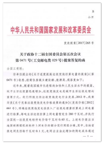 今年年初,環(huán)境商會以全國工商聯(lián)團體提案的形式向兩會遞交《關(guān)于適度提高垃圾焚燒折算電量的提案》,國家發(fā)改委于9月正式答復(fù)。來源:全聯(lián)環(huán)境商會關(guān)于適度提高垃圾焚燒折算電量的提案(初稿單位:全聯(lián)環(huán)境服務(wù)業(yè)商會)隨著我國城市化進程的加快和垃圾產(chǎn)生量的逐年增加,全國垃圾處理設(shè)施日益難以滿足城市廢棄物的無害化安...