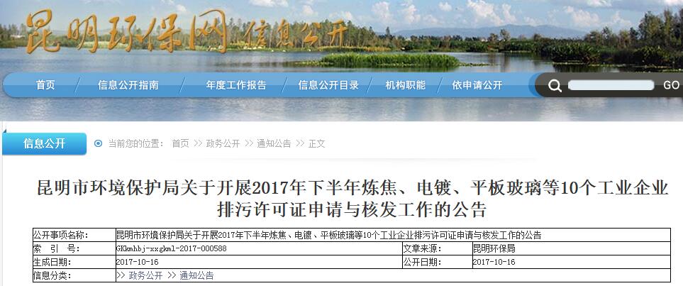 近日昆明環(huán)保局發(fā)布了《昆明市環(huán)境保護(hù)局關(guān)于開展2017年下半年煉焦、電鍍、平板玻璃等10個工業(yè)企業(yè)證申請與核發(fā)工作的公告》各縣(市)、區(qū)環(huán)境保護(hù)局,各國家級、省級開發(fā)(度假)園區(qū)環(huán)境保護(hù)局,相關(guān)企業(yè):根據(jù)《國務(wù)院辦公廳關(guān)于印發(fā)控制污染物排放許可制實施方案的通知》(國辦發(fā)〔2016〕81號)、《固定污...