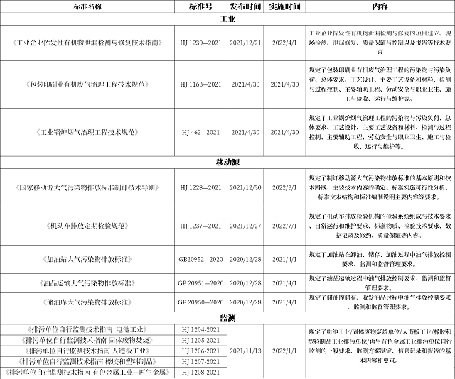 2022年4月1日,國家生態(tài)環(huán)境標(biāo)準(zhǔn)《工業(yè)企業(yè)揮發(fā)性有機(jī)物泄漏檢測與修復(fù)技術(shù)指南》將正式施行。 其實(shí),自生態(tài)環(huán)境保護(hù)工作步入第十四個五年規(guī)劃以來,作為深入打好污染防治攻堅(jiān)戰(zhàn)的重要環(huán)節(jié),大氣污染防治相關(guān)標(biāo)準(zhǔn)就一直在陸續(xù)更新中,涉及工業(yè)、移動源、監(jiān)測等多個領(lǐng)域,粗略整理如下: 《工業(yè)企業(yè)揮發(fā)性有機(jī)物泄漏...