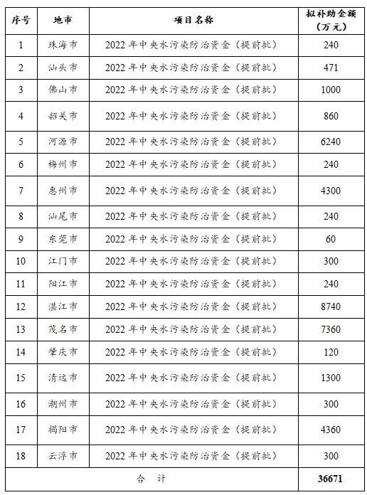 廣東省生態(tài)環(huán)境廳關(guān)于2022年中央水污染防治資金(提前批)、大氣污染防治資金(提前批)安排計(jì)劃的公示 經(jīng)廳黨組會(huì)議、廳務(wù)會(huì)議審議通過,我廳擬申請?zhí)崆跋逻_(dá)2022年中央水污染防治資金36671萬元、大氣污染防治資金44054萬元。 按照《廣東省省級(jí)財(cái)政專項(xiàng)資金管理辦法(試行)》(粵府〔2018〕120...