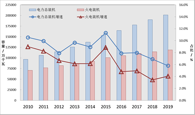 2020年度火電行業(yè)環(huán)境評估報告 帥偉 莫華 吳家玉 1.行業(yè)建設與運行 建設發(fā)展進度大幅放緩,裝機與發(fā)電量占比逐年降低。2015年以來,受政策調控與經(jīng)濟下行影響,火電裝機增速大幅降低,截至2019年底,火電裝機約11.90億千瓦,占電力總裝機比例首次降至60%以下,火電發(fā)電量50465億千瓦時,占...